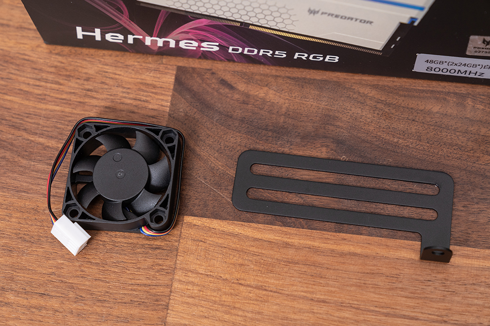 原厂赠送定制散热风扇,风扇规格为4CMx4CM,提供4.72CFM风量直吹,搭配支架可轻松安装于主板,为内存提供辅助散热,进一步提高散热效能和超频的稳定性。
