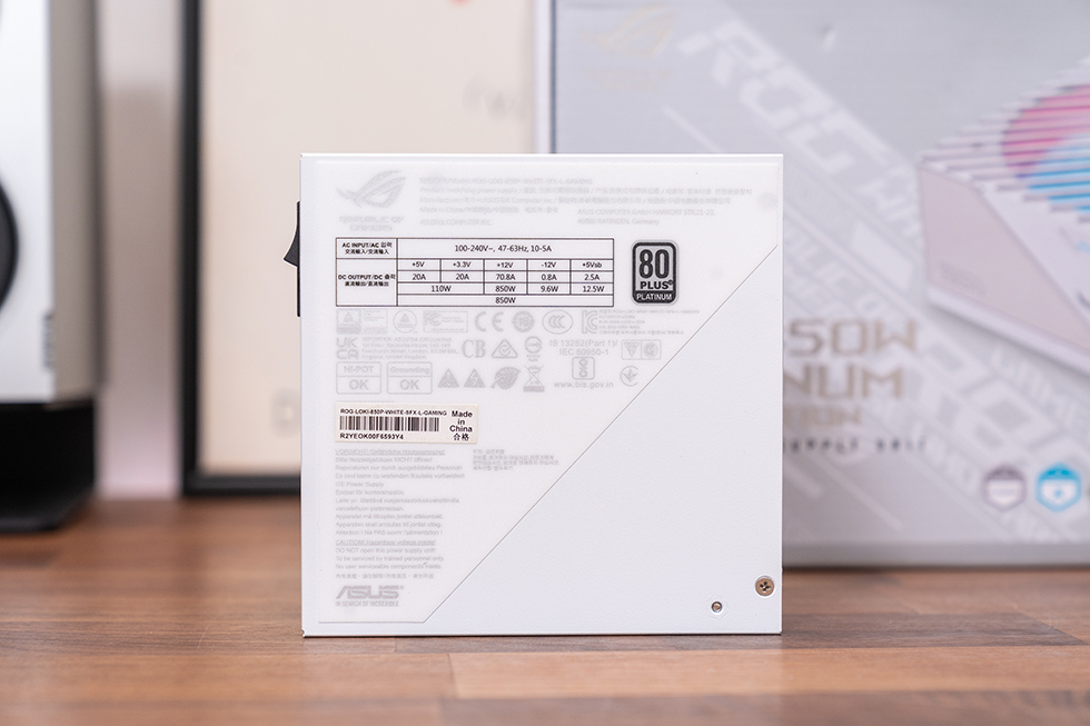 电源为ROG LOKI 洛基 850w SFX-L白金牌电源,延续了ROG THOR 雷神的设计的LOKI,调整为SFX-L的规格,白色款对于黑色款外包装调整为白色主基调,850W、白金牌、原生12VHPWR接口,10年质保,该有的一个都不少。