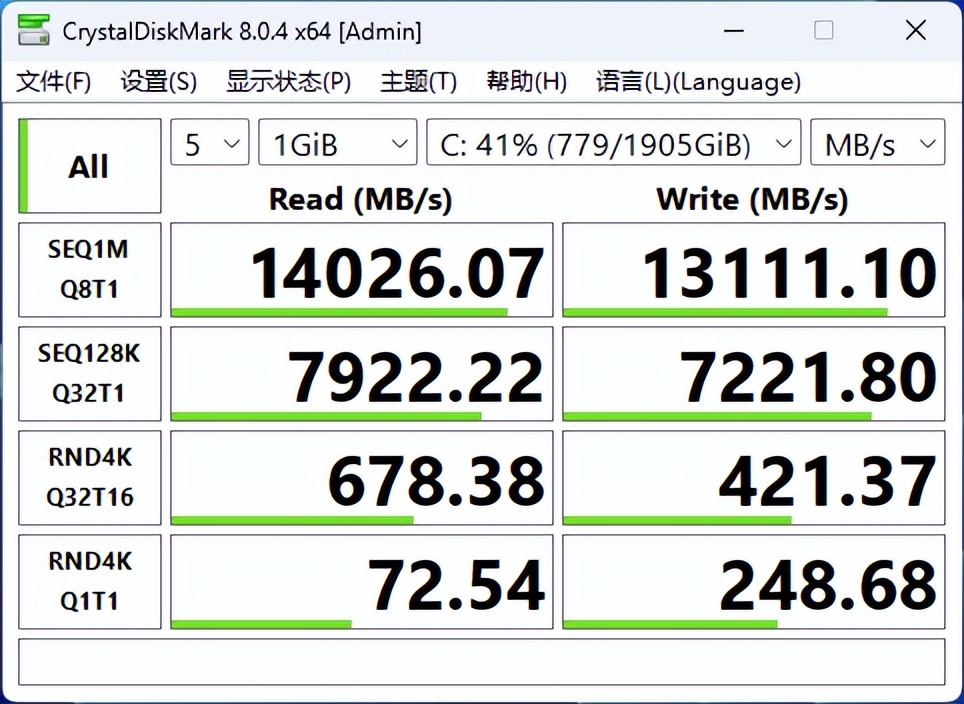 移除表面的铜箔石墨烯散热贴后可以看到正面的PCB靠近金手指的位置部署了慧荣科技的 SMI SM2508,作为旗舰级 PCIe Gen5 固态硬盘主控,采用 6nm 制造工艺 ,支持 NVMe 2.0 协议,内建 8 个闪存通道,最高支持 3600MT/s 的数据传输速率,能够实现高达 14.5GB/s 连续读取和 14GB/s 的连续写入速度。