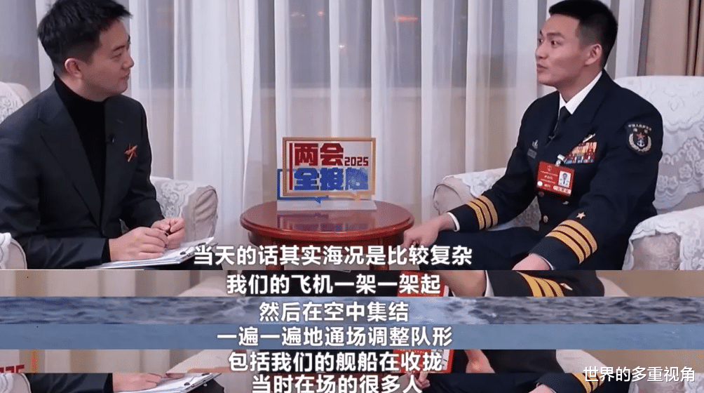 央视播出一段对参加两会的海军代表的采访,里面提到了去年中国海军首次双航母编队的事。