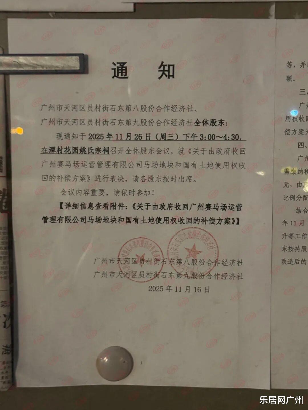 将在2025年11月26日,下午3:00–4:30讨论表决《政府收回广州赛马场地块及国有土地使用权的补偿方案》。