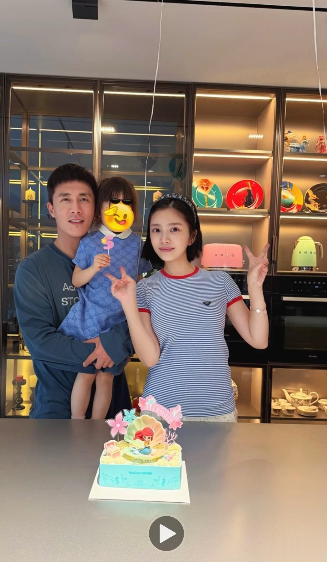 然后,一家三口站在放满漂亮摆设的玻璃柜前,彩色的纸屑又纷纷扬扬地飞起来,王灿做着剪刀手的手势,杜淳眼神很温柔,“小蛋饺”拿着一根棒棒糖,脸上还被特效贴了一个小黄脸,一家人笑着闹着。