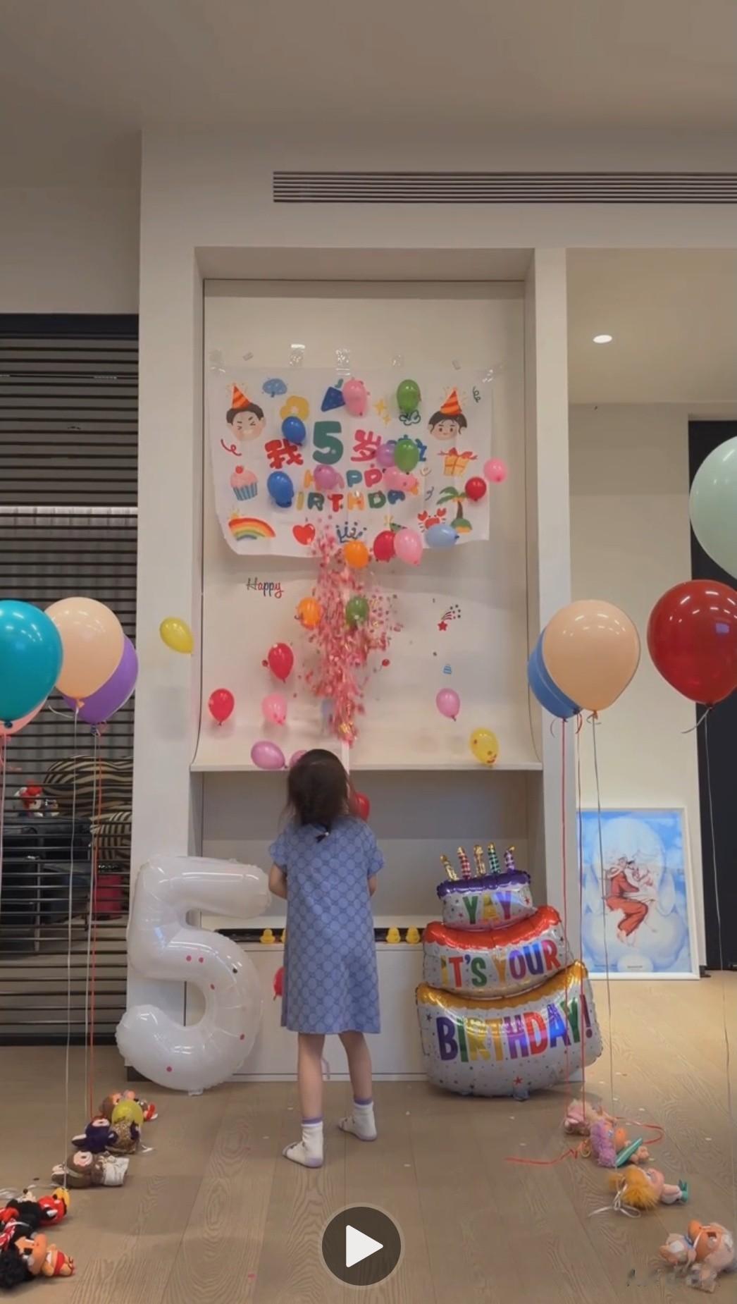 看这次生日会的布置,专门定做的主题蛋糕,墙上挂满的气球装饰,地上精心放好的玩偶,还有那间摆了很多艺术品的房间,每个地方都能看出“用心”两个字,但这种用心不是为了炫耀,而是把女儿喜欢的每一样东西都变成现实,让她知道“你喜欢什么,爸爸妈妈都记得”。
