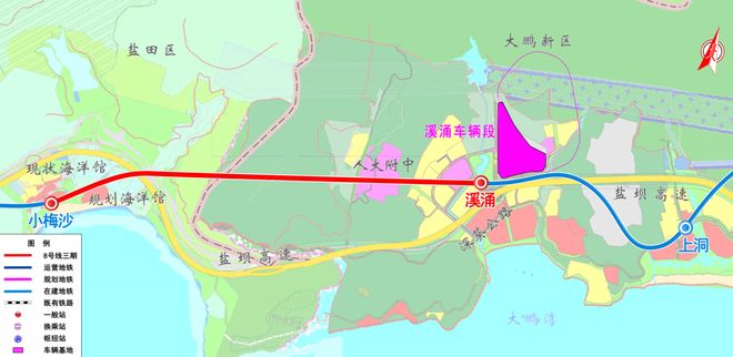 地铁8号线三期工程起于盐田区8号线二期小梅沙站,止于大鹏新区溪涌站,全长约3.7km。