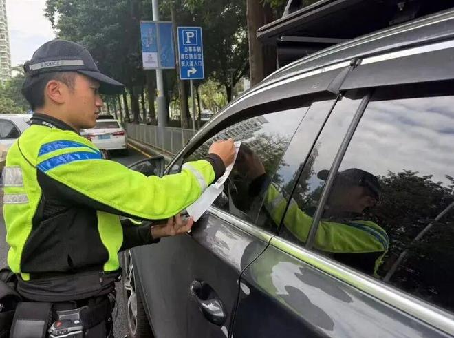 10月30日,在宝安体育馆西北门所在的宝安区罗田路,宝安交警对路面进行巡查,并对在路边停留的车辆进行劝离。