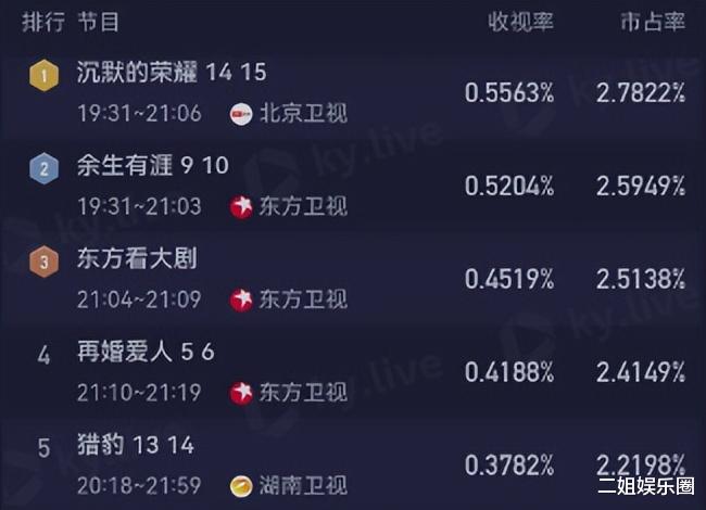 剧集在腾讯站内热度破25000,对于严肃都市题材不低,东方卫视收视破0.5,直奔东方卫视年亚,也算是观众对这部剧的认可。