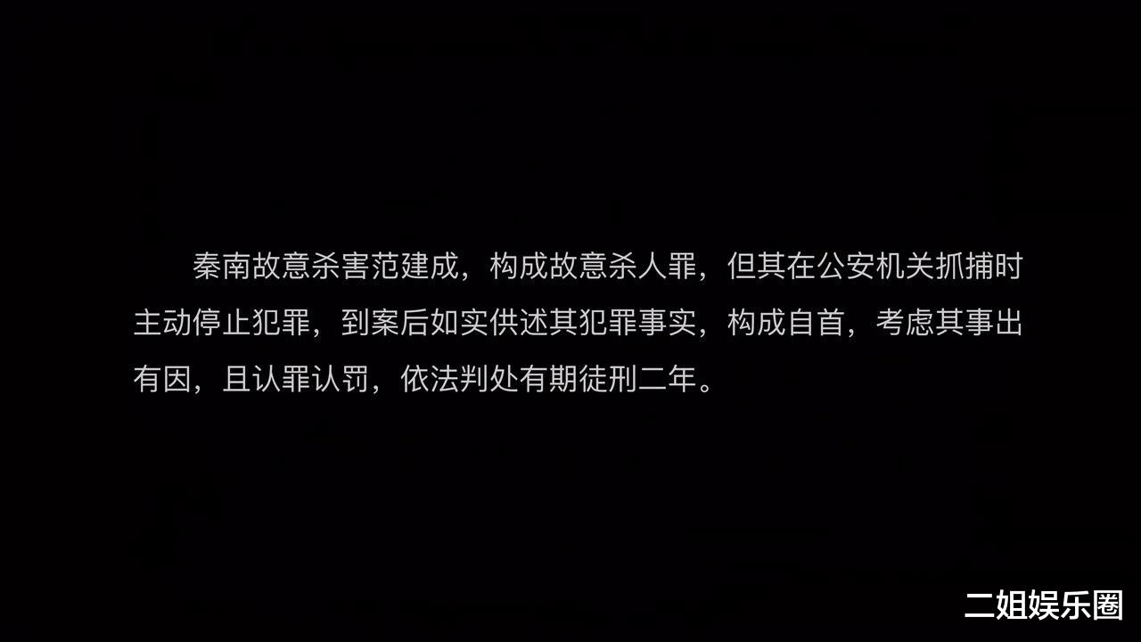 而秦南也被判犯故意伤害罪入狱,但因自首且认罪态度良好,被判两年。