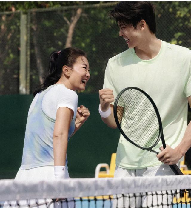 汪顺发布了一组打网球的照片,是他和贾玲在一起打球。