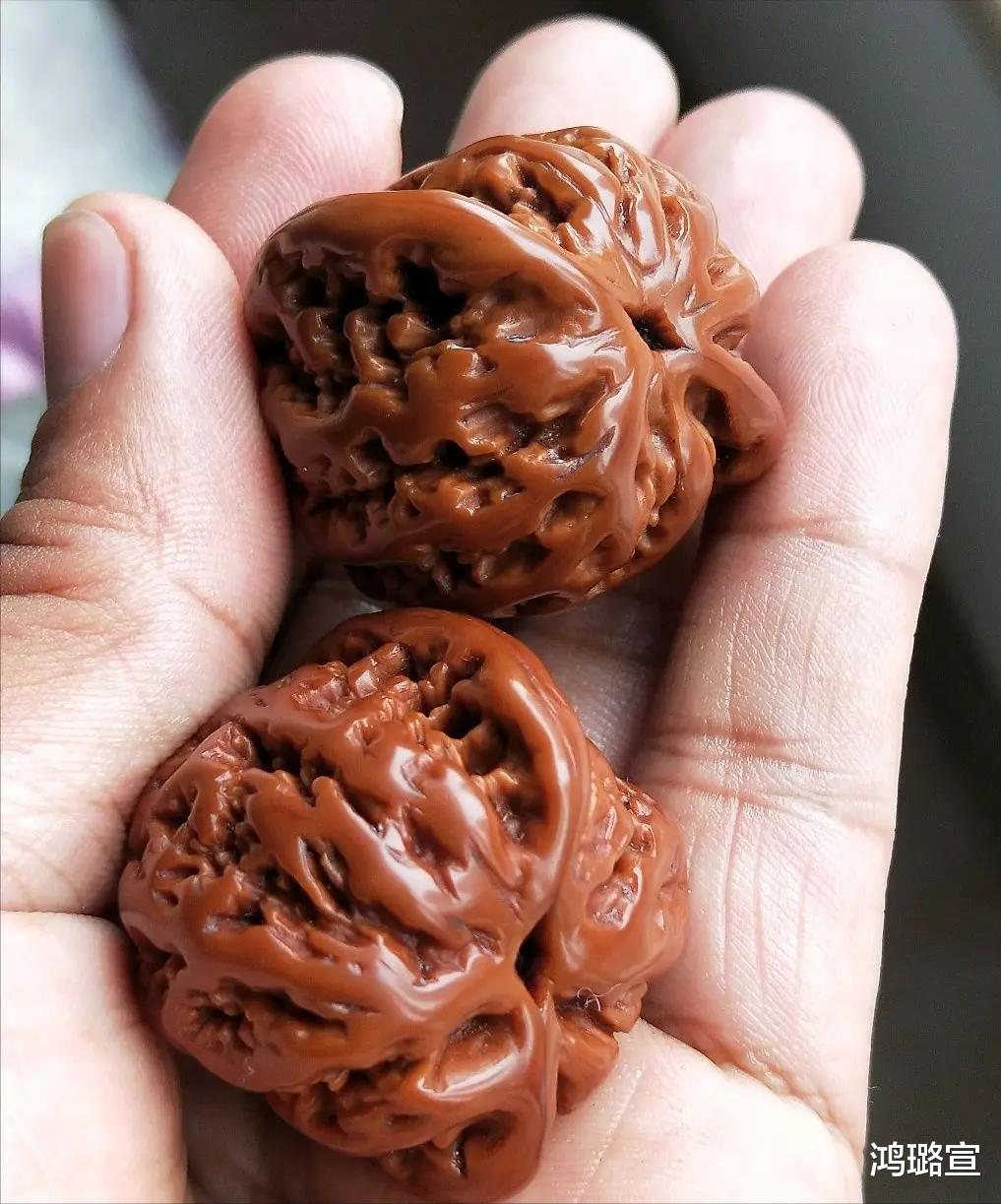 那么你手中文玩核桃没有变色的加持,就是一对亮晶晶的黄疙瘩!毫无美感不说后期想要再改变也只能是难上加难。所以文玩核桃盘玩的顺序是先变色后包浆!切勿本末倒置
