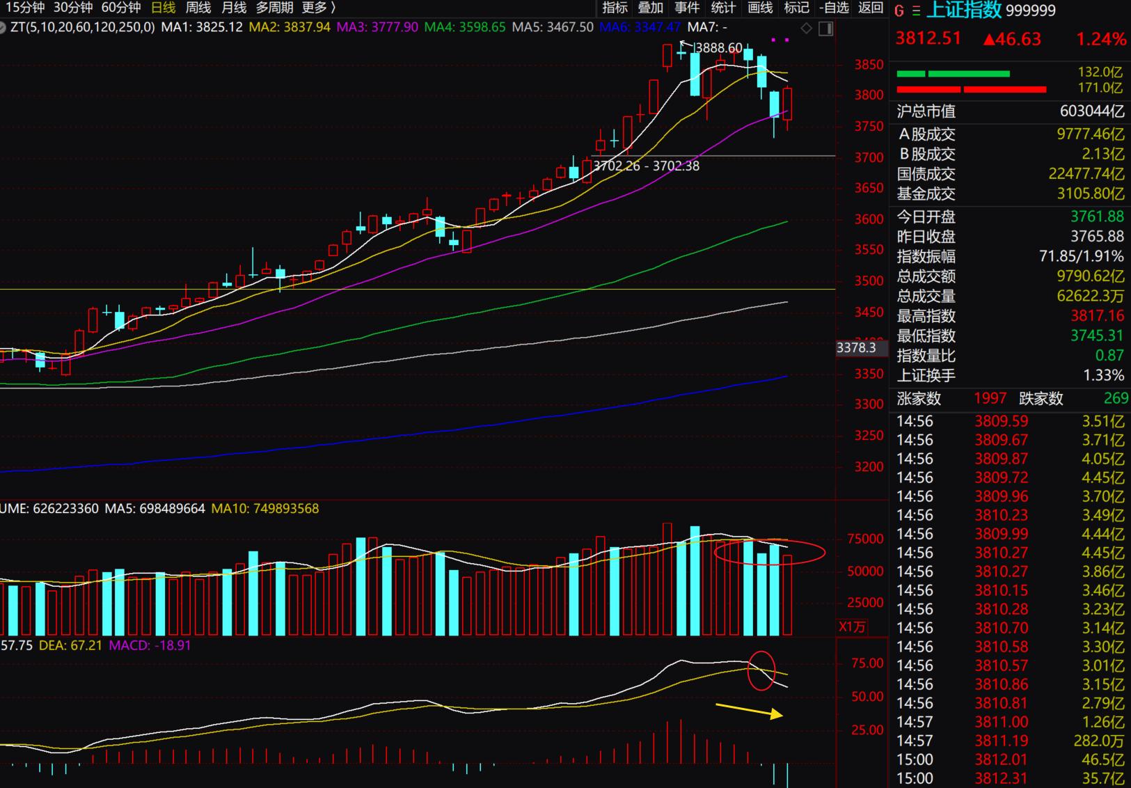 先回顾下周五走势,开盘后大盘低开高走,表现强势的是新能源方向上的光伏、固态电池、锂电池等,护盘资金和抄底资金共同推进,大盘股拉升,最终大盘涨幅1.24%,重回3800点关口,成交13256亿,从本周的走势以看出,大盘经过快速上冲后,周三周四开始连续下探大跌,个股下跌幅度较大,这时人气进入冰点情绪,然后冷不丁又直线拉升周五来了一根改变信仰的大阳线。这就是牛市里面多长阴的表现,我们可以确认的信号是,大盘量能不持续缩量,趋势上就还处于上行问题都不大。