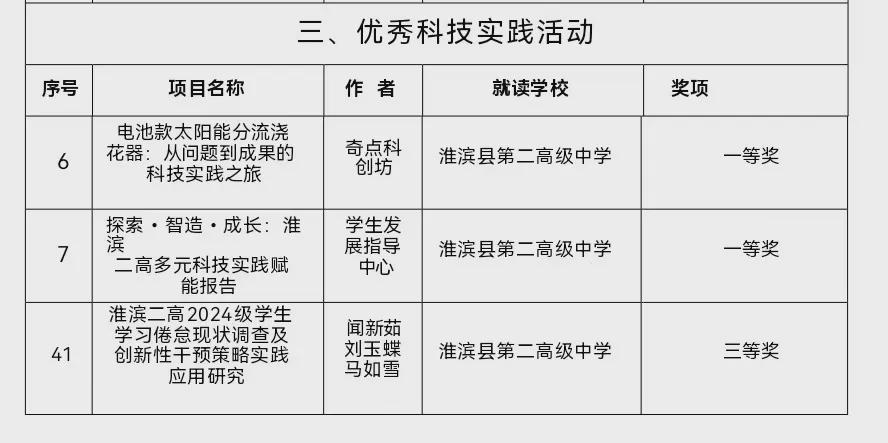 在此次大赛中,淮滨二高高度重视,学生发展指导中心精心筹备,指导教师团队一路相伴,从选题构思、方案设计到作品完善,都给予了学生们专业而细致的指导。学生们紧扣生活实际,关注科技前沿,提交的作品涵盖了科技竞赛创意项目、科技创新成果竞赛项目、科技实践活动、青少年科学影像项目等多个领域,作品内容既具有创新性、实用性,又不失科学性,充分体现了二高学子勇攀科学高峰、敢于突破的精神风貌。