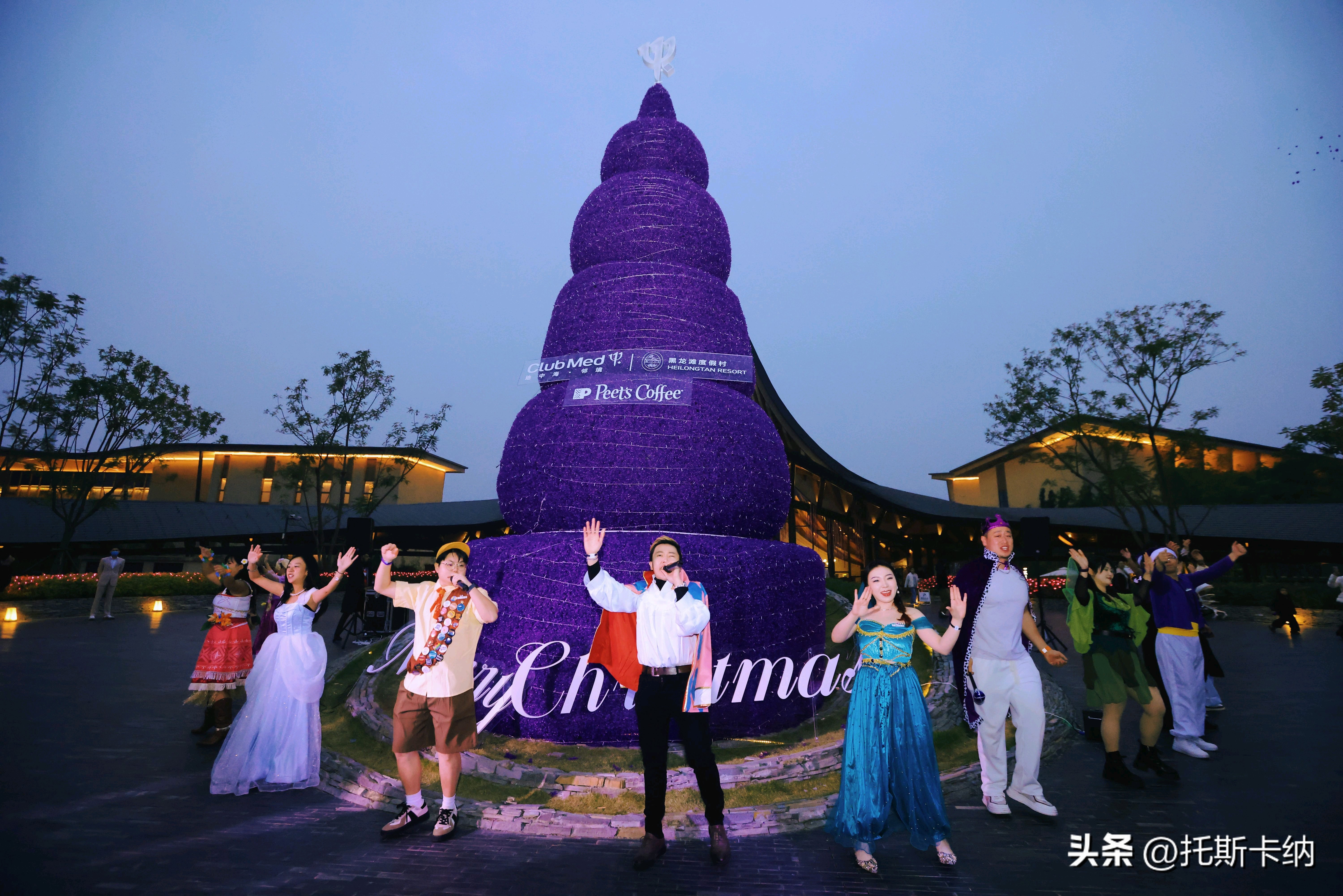 度假村今年以“幻紫圣诞·奇境飞驰”为主题,携手Peet's Coffee,倾心呈献紫色巨型圣诞树与飞马,搭配随处可见的圣诞元素装饰,为宾客们打造了梦幻璀璨的节日场景。