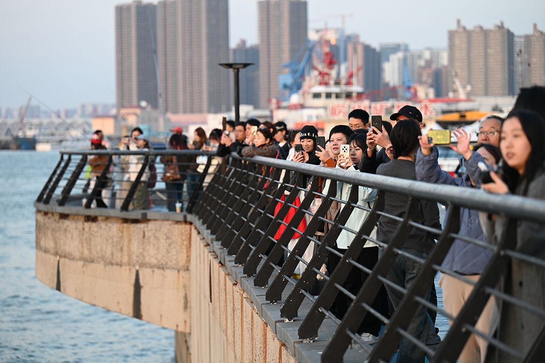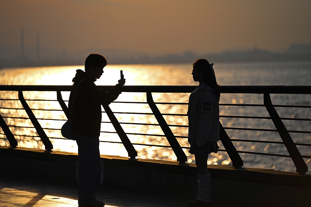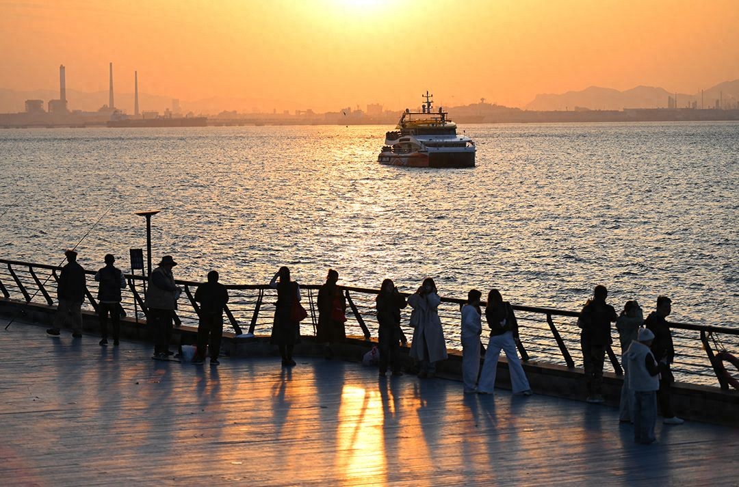 秋日青岛的浪漫,藏在橘子海日落里。比起前海的游人如织,后海以一份静谧从容,成为市民邂逅秋日浪漫的秘境。择一个秋高气爽的午后,循着海风的气息,漫步金茂湾西北侧的沿海木栈道,便能撞见这份独属于秋日的温柔。眼前,澄澈海面泛着橘子般的暖橙波光,远处落日如融化的蛋黄,将余晖洒向天际与碧波;岸边,渔人间或挥杆,雕塑静静伫立,天风裹挟着海浪声拂过耳畔,所有喧嚣都被涤荡而去。没有拥挤的人潮,只有大海、落日与自在的心境。在这里,时光仿佛慢了下来,游人可尽情驻足,将这片“橘子海”与“蛋黄霞”的浪漫尽收眼底,让秋日的诗意与治愈,在海风里悄然沉淀。(杨广科)
