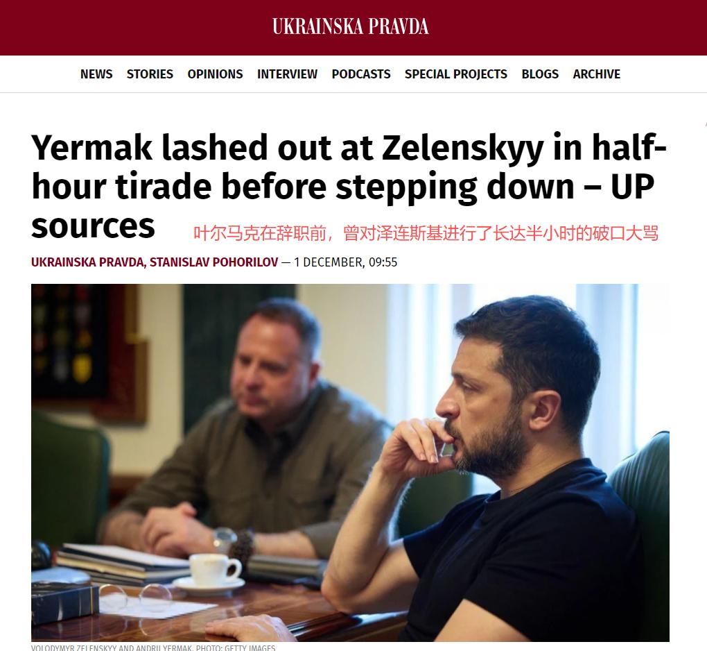 近日,乌克兰《真理报》援引政府内部人士消息的话爆料,前总统办公室主任叶尔马克直到最后一刻都不相信自己会被迫辞职。因此,当他被要求写辞职信时,当场情绪失控,对泽连斯基破口大骂了半个小时。