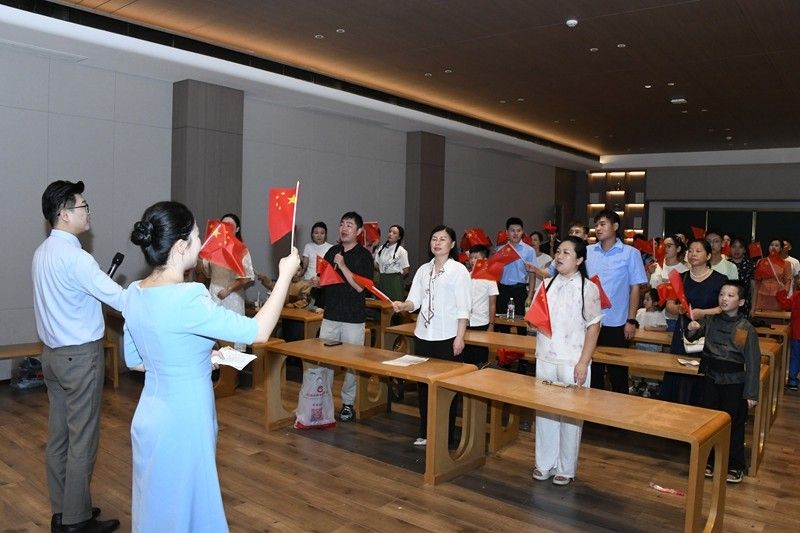 此外,活动还诵读了《别潢川》《悠悠潢河水,依依潢川情》《你好,春申君》等与潢川本地文化相关的作品,表达了对家乡的热爱与赞美。其中,由县住建局、中建筑港集团有限公司选送,孙锐、李岩、孙雨旋、殷昭谱诵读的《星河长明照潢川》别具一格。该作品以独特视角展现了潢川的发展变迁,也抒发了这些异乡工作者在潢川工作一年多来对这座城市的深刻印象和深厚情感。最后,活动在全体人员合唱《歌唱祖国》的激昂旋律中圆满落幕。