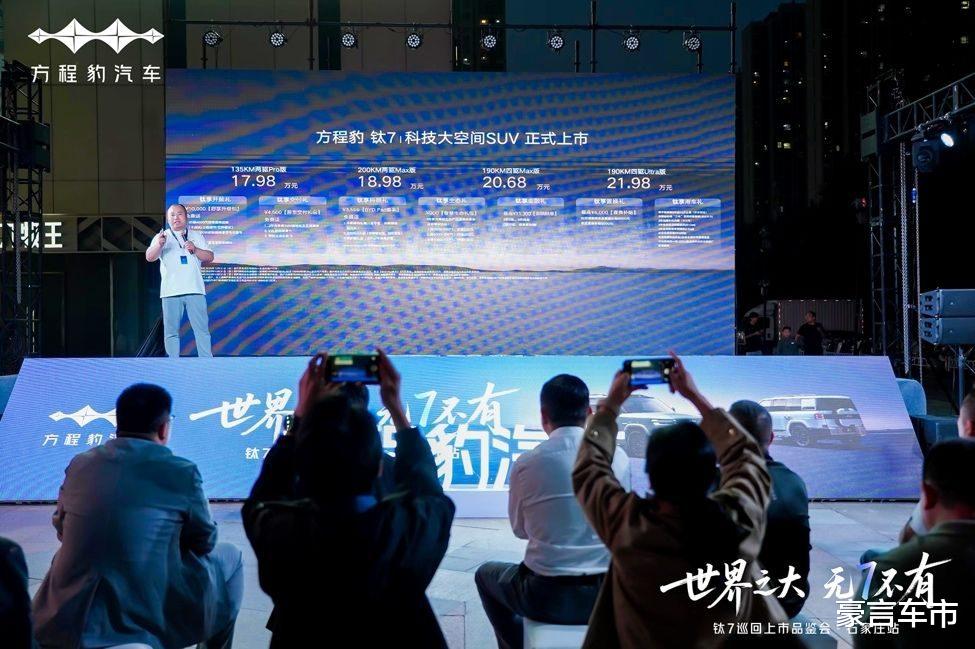 作为方程豹品牌打破 “二元对立” 的又一力作,钛 7 以大空间、高配置、强智能的核心优势,重新定义了家用硬派 SUV 标准。新车共推出4个配置版本,售价17.98万元-21.98万元:其中,135KM两驱Pro版17.98万元,200KM两驱Max版18.98万元,190KM四驱Max版20.68万元,190KM四驱Ultra版21.98万元,款款越级,款款超值,下单即刻享受最高价值超3.6万元的上市权益。