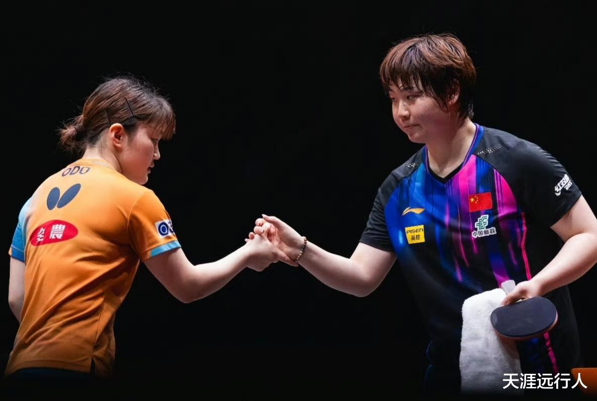 女单1/4决赛,两场中日之战,蒯曼4-2力克大藤沙月,孙颖莎横扫长崎美柚,王曼昱4-1力胜韩国华裔球员朱芊曦,陈熠德比战4-1战胜陈幸同,国乒包揽女单四强。
