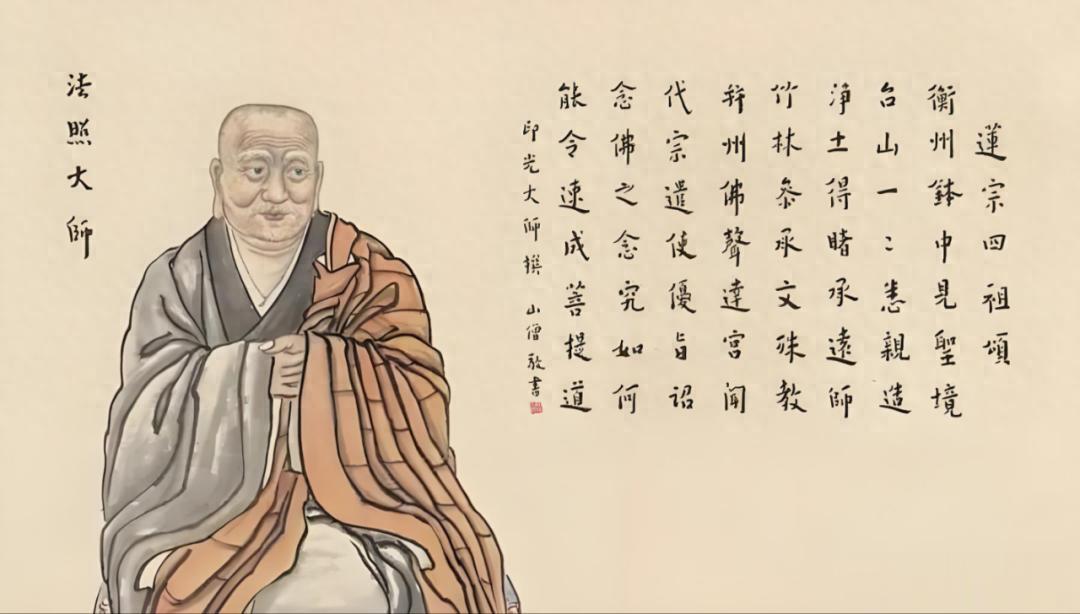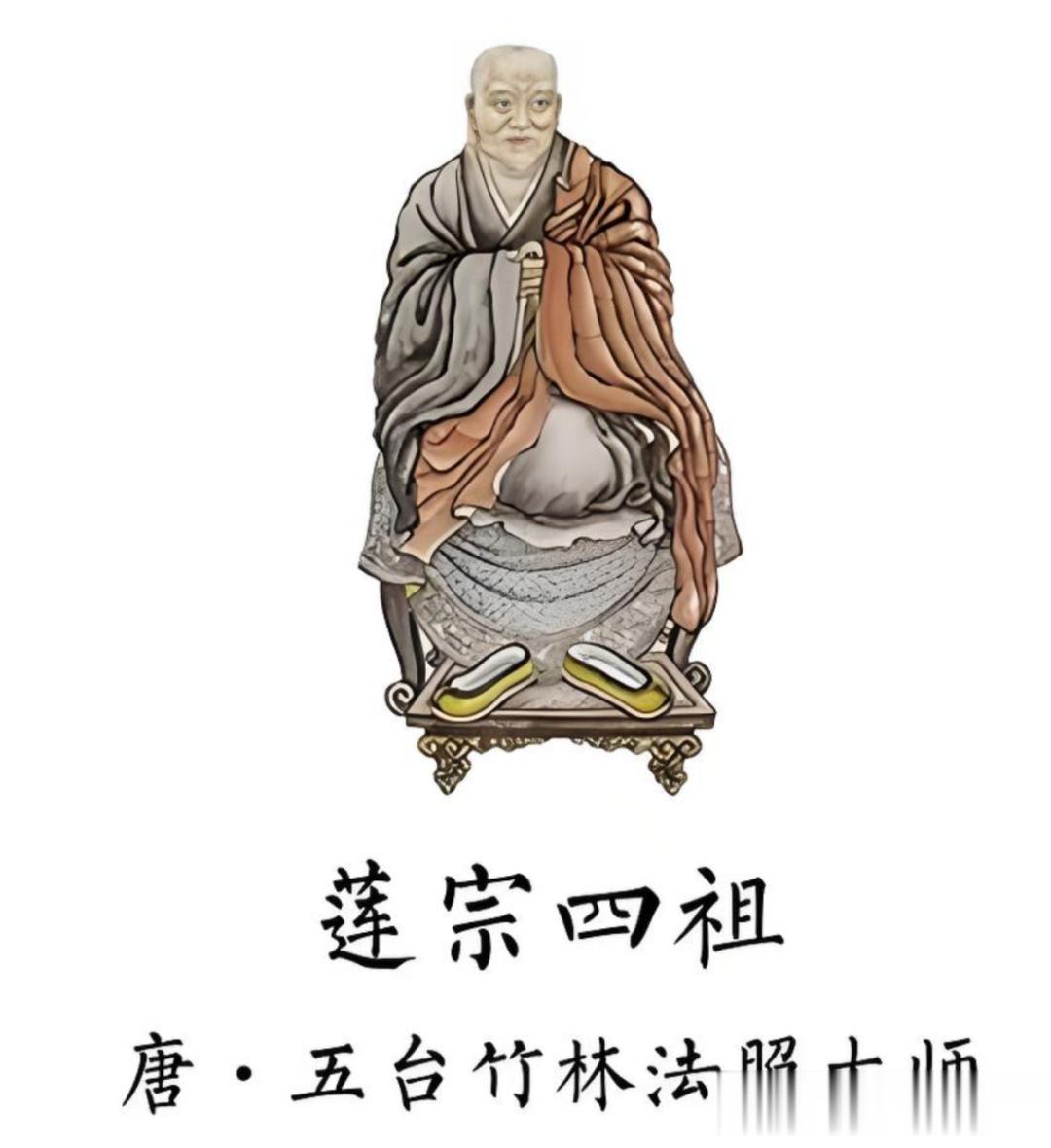 净宗四祖法照大师(公元747~821年),唐代僧,又称五会法师。身世事迹多不详。一说法照大师是南梁人,初由东吴来庐山,慕慧远大师之芳踪,结西方道场,专修禅观。法照大师一日入定往极乐世界,见承远大师侍于佛侧而大惊悟,永泰年中(公元765~766年),法照大师登南岳衡山,师从承远大师受净土法,后始修念佛法门。