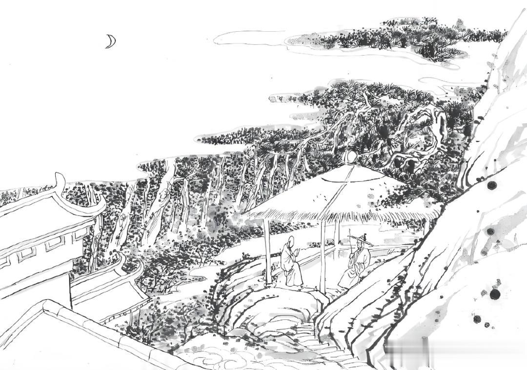 大历五年四月五日,法照大师等数人到了五台山,蒙佛光照引,寻至大圣竹林寺,看见文殊菩萨与普贤菩萨端坐在讲堂狮子宝座上,为众说法,历历可闻。法照大师向二大菩萨恭敬顶礼后禀问:“末代凡夫,去圣时遥,知识转劣,垢障尤深,佛性无由显现。佛法浩瀚,未审修行于何法门,最为其要?唯愿大圣,断我疑网。”文殊菩萨回答:“汝今念佛,今正是时。诸修行门,无如念佛,供养三宝,福慧双修,此之二门,最为径要。我于过去劫中,因观佛故,因念佛故,因供养故,今得一切种智。是故一切诸法,般若波罗蜜,甚深禅定,乃至诸佛,皆从念佛而生。故知念佛,诸法之王,汝当常念无上法王,令无休息。”法照大师又问:“当云何念?”文殊菩萨开示:“此世界西,有阿弥陀佛,彼佛愿力不可思议,汝当继念,令无间断,命终之后,决定往生,永不退转。”说后,菩萨为法照大师摩顶,并为他授记:“汝以念佛故,不久证无上正等菩提。若善男女等,愿疾成佛者,无过念佛,则能速证无上菩提。”语讫,二位大圣互说偈颂。法照大师恭敬聆听,法喜充满,作礼而退。顷时,刚才的景物倏然隐去,法照大师心中倍增悲感,便在原地立石作记,用资纪念。后蒙一老梵僧的劝告,将所见所闻宣示诸道友,并在原地仿建一庄严的寺庙,名为竹林寺。