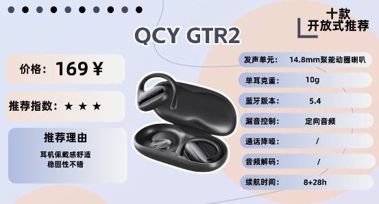平价开放式耳机好用吗,G T R 2 的外壳采用镜面质感设计,触感顺滑但容易留下指纹,日常需要简单擦拭即可保持干净。音质上加入定制的低音导管,使低频更加浑厚有层次,听流行、电音效果尤佳;高频表现偏柔和,在复杂乐段中的分离度略逊。单次续航约 8 小时,总续航能达到 28 小时,不过充电盒无法直观看电量,需要查看指示灯或 APP。