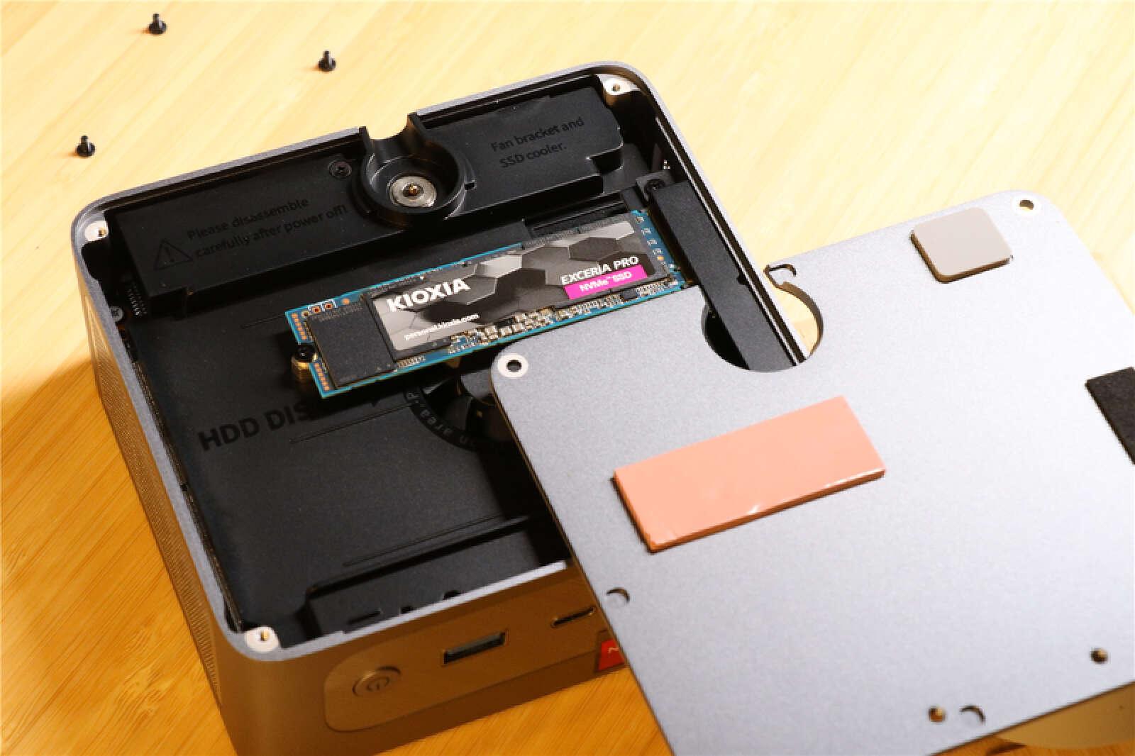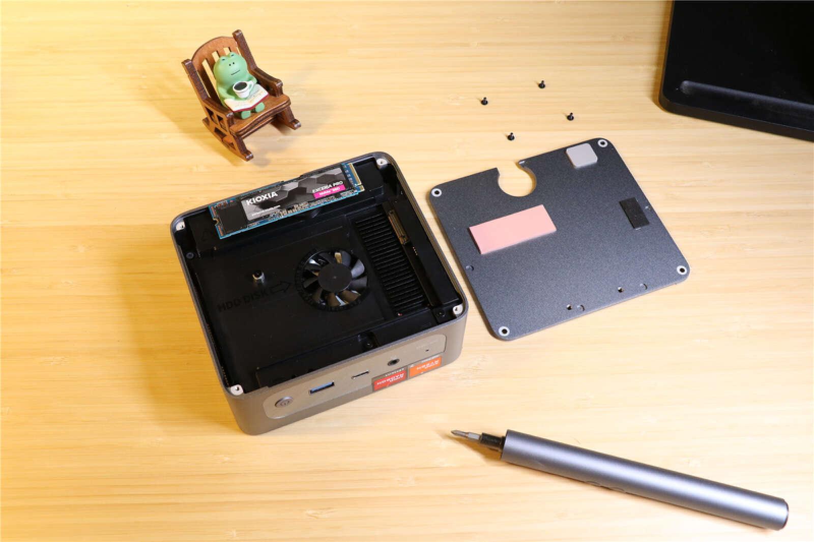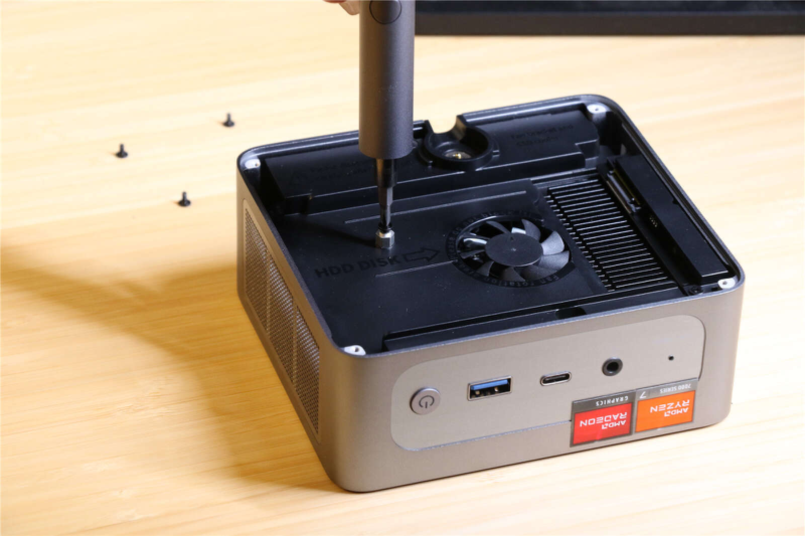 铠侠SE10 NVMe SSD固态盘的安装步骤SER7在设计上就支持固态硬盘的扩充,只需拧下底部的4颗螺丝,就能轻松打开底盖。