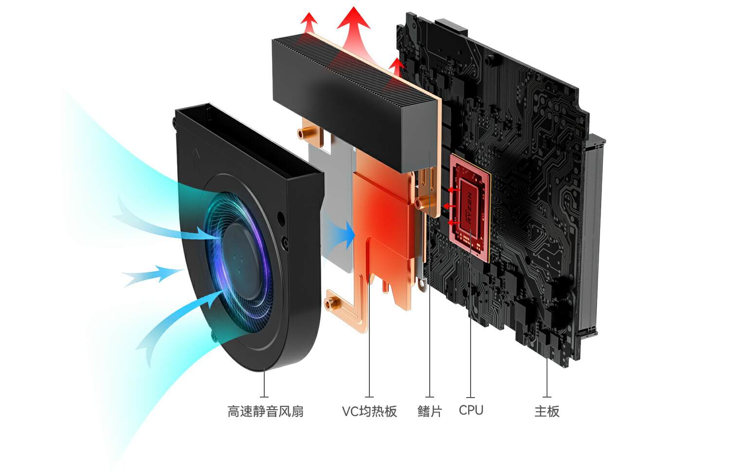 SER7还有VC均热板与高速静音风扇构成的主动散热系统,