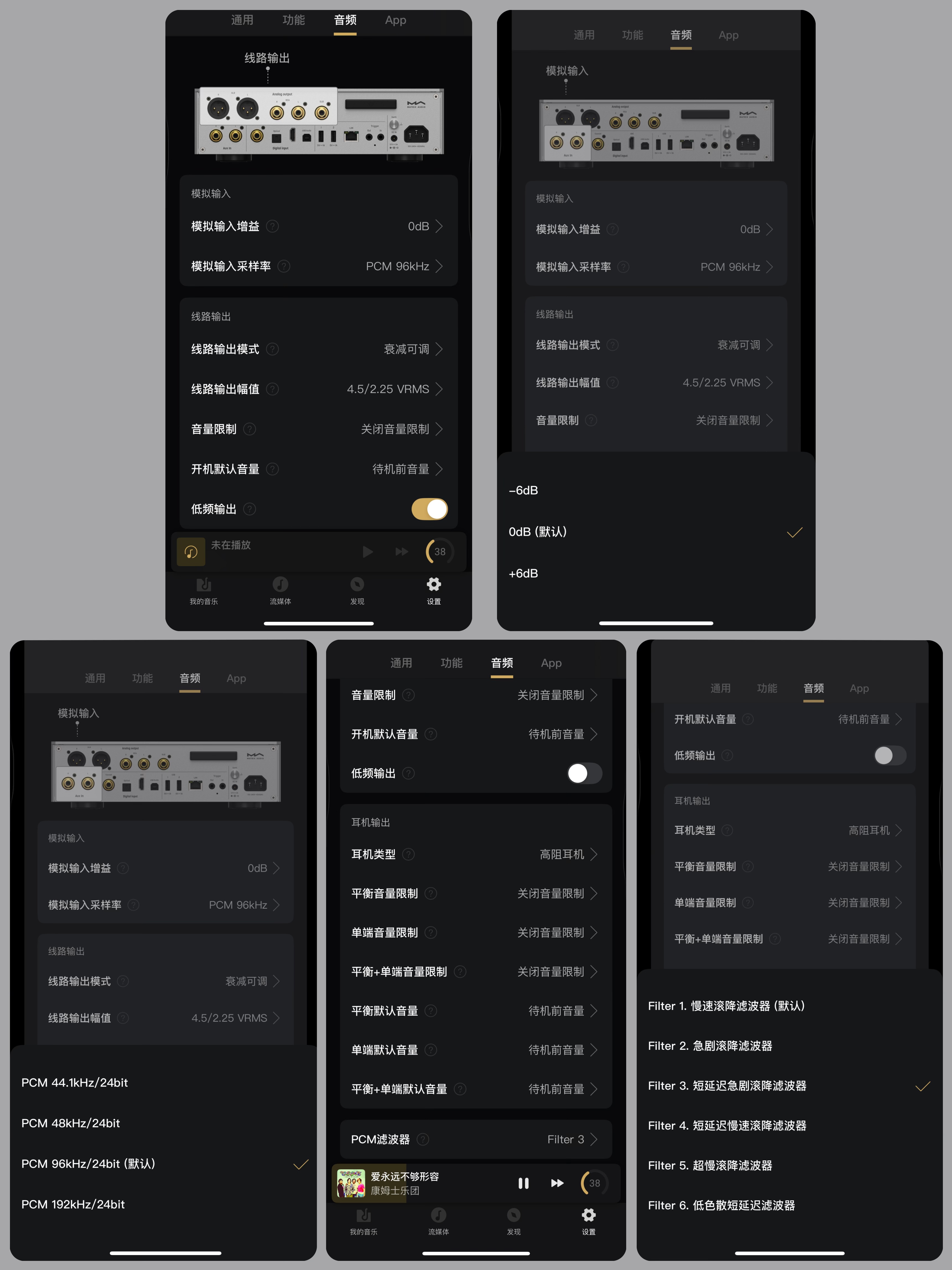 4:逻辑清晰,通俗易懂,小白用户看得懂上手就能用,老烧的专业需求也要满足——TS-1整体菜单逻辑做的够浅够直接,常用的功能,以通俗,大视觉,最表层的逻辑呈现,即便专业用户需要的功能,类似耳机增益、PCM滤波器、模拟输入和输出的增益衰减等,都是很实在的调节选项,也随便翻一下就找到了;
