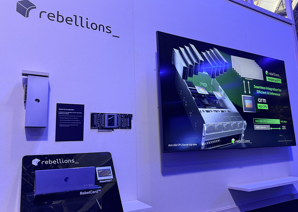 在大会展区,SK电信旗下Rebellions展示了使用Arm AGI CPU作为头节点,在同一台服务器中有一批加速器的实例。