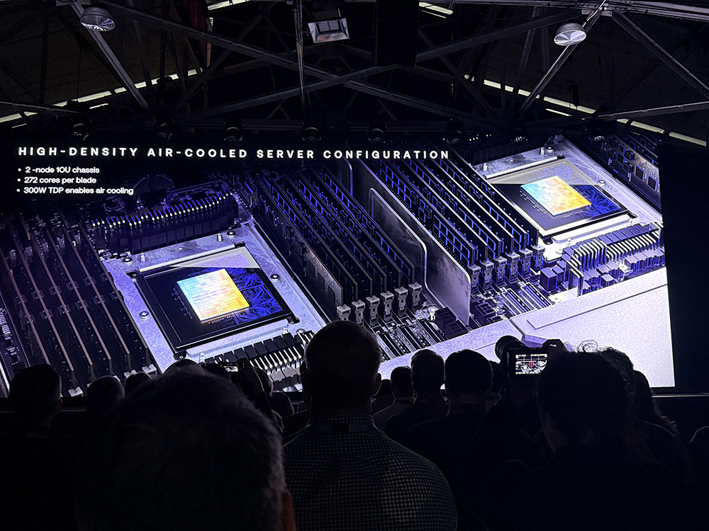 AGI CPU支持高密度1U服务器机箱的风冷部署方案。下图是一个标准OCP风冷机架。这些刀片服务器可在标准风冷36kW机架中满配部署,30台双节点1OU刀片服务器可提供总计8160个核心。