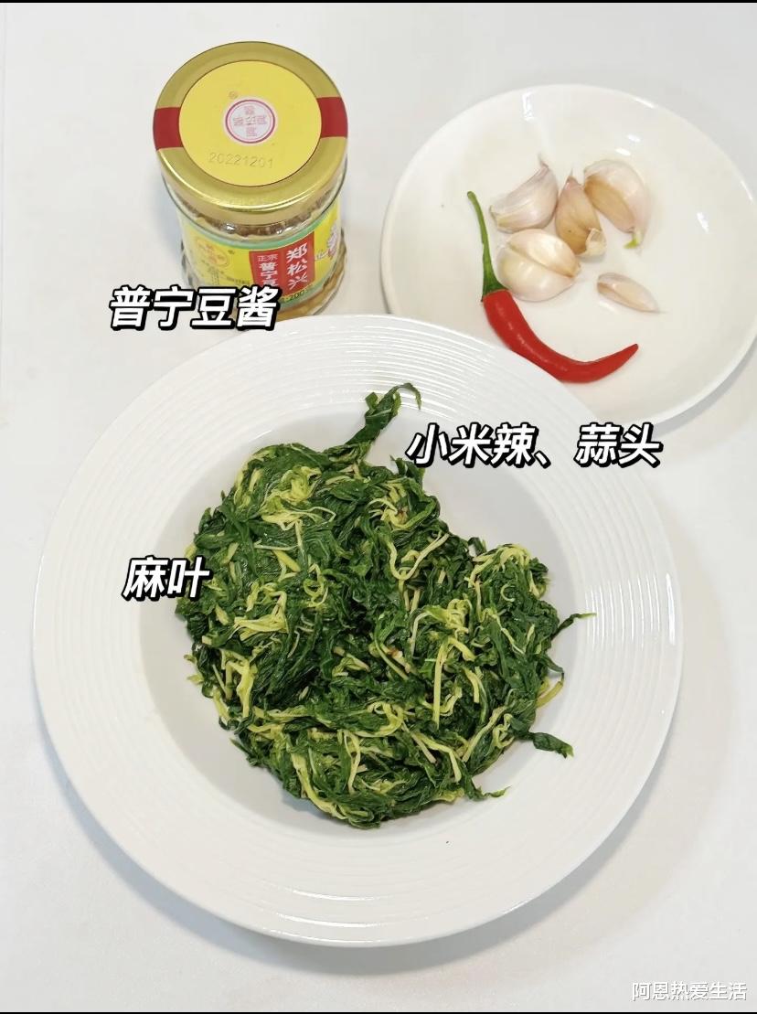 (对了,如果你买不到处理好的麻叶,可以用番薯叶、空心菜梗试试同样的做法,一样美味哦!)