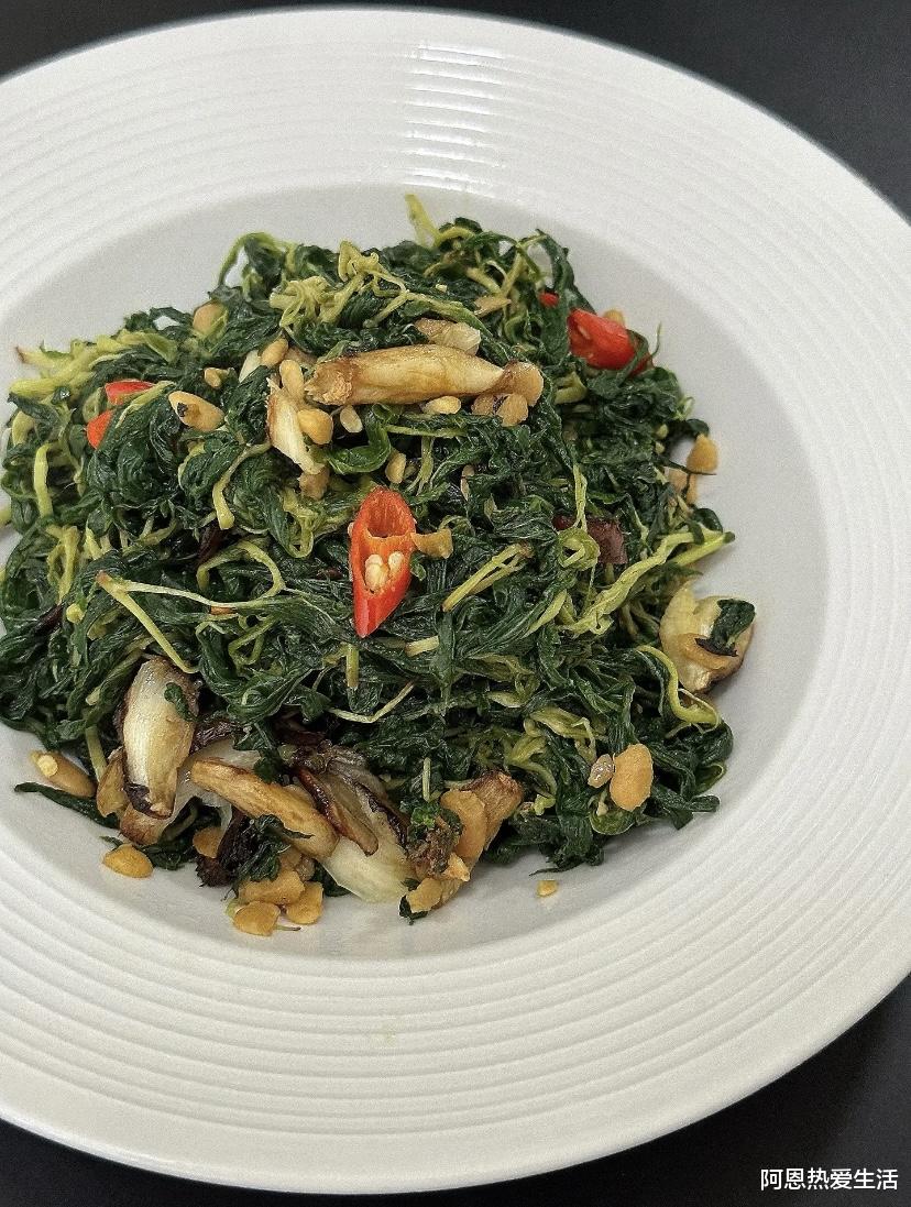 约两分钟后,看到麻叶变得油亮软塌,立即关火出锅。整个厨房早已被咸香包围,邻居都要探头问一句:“今天吃什么这么香?”