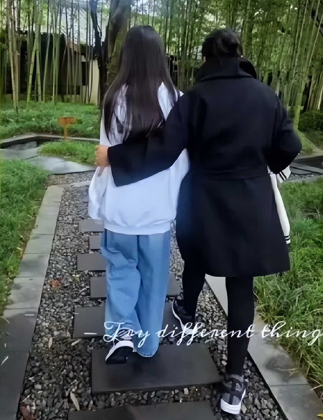 昨天有成都本地网友在街上偶遇了她们,拍下了张兰和玥儿手挽手散步的背影。