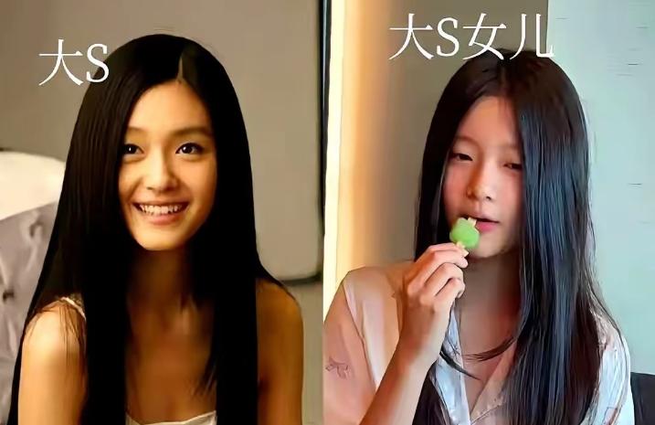 长长的头发披在肩上,那发质那长度,跟妈妈大S年轻时候简直一个模子刻出来的。