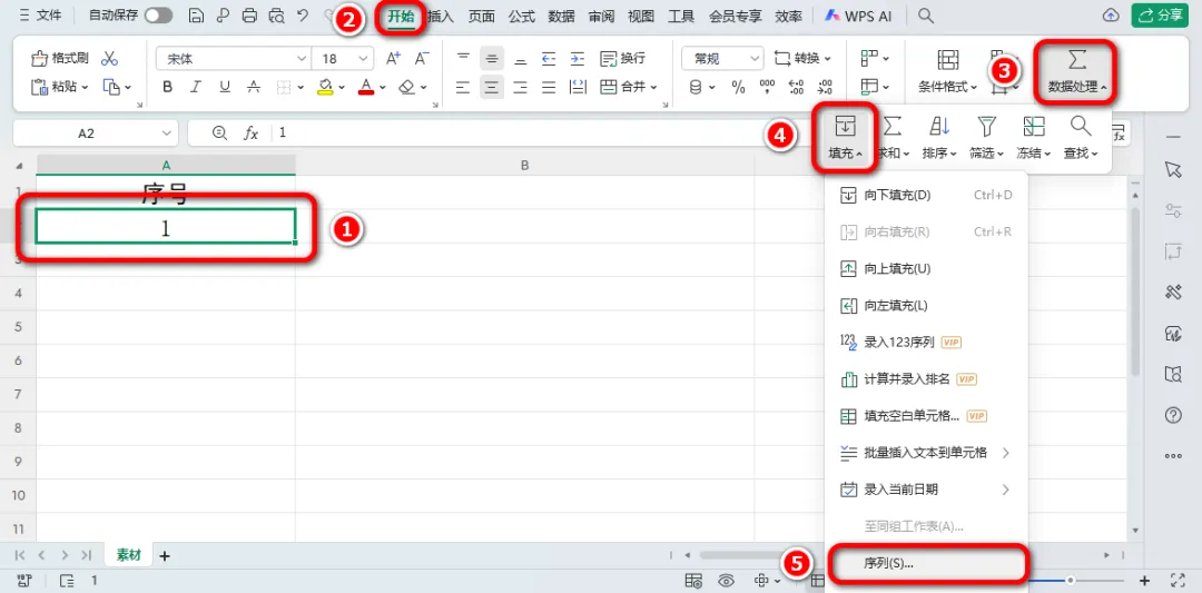 1.在Excel顶部菜单栏中,点击「开始」选项卡,在「数据处理」功能区找到「填充」。