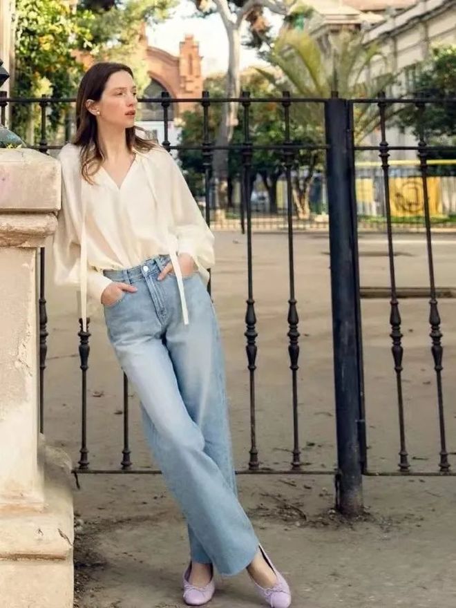 长一点的裤子也能穿出新鲜感,刚好这两年很流行这种加长的曳地裤,穿上是舒服又自在的感觉。
