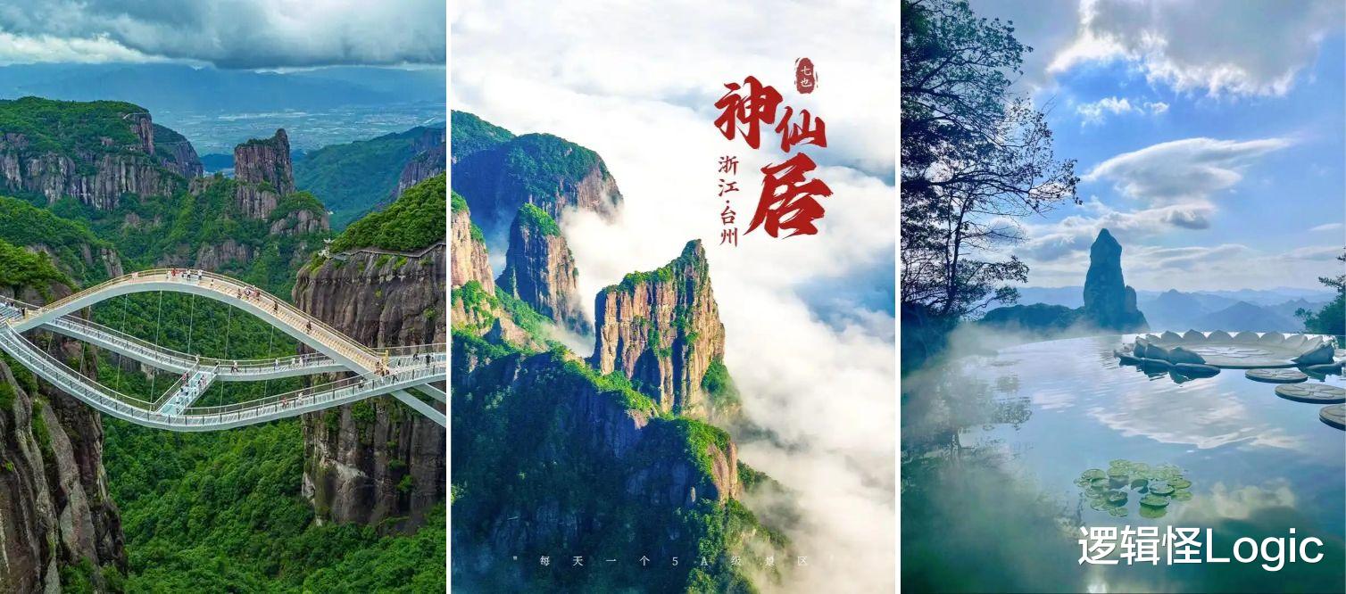 【台州·神仙居】国家5A景区,独特流纹岩地貌造就奇峰绝壁。乘缆车上山后,沿悬空栈道环行,如入山水画境,视觉冲击强烈。