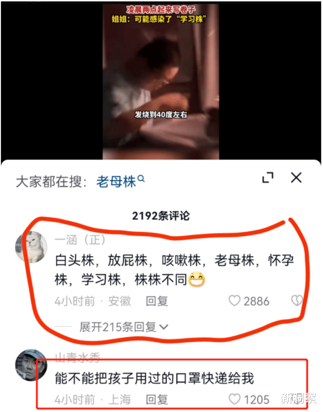 也有人拍视频,调侃感染后的弟弟凌晨两点起来写卷子,可能感染了“学习株”。