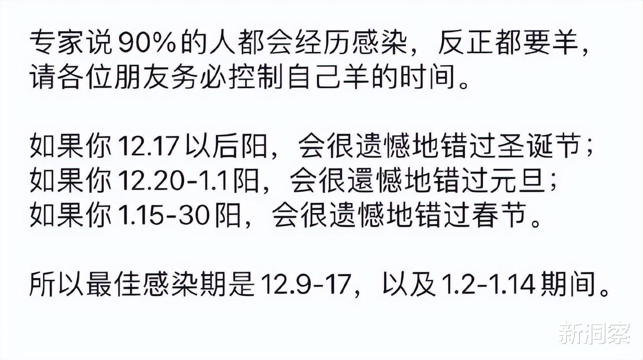 “如果你12.17以后阳,会错过圣诞节;如果你12.20-1.1阳,会错过元旦节……”