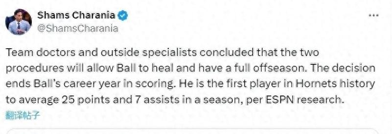 夏洛特黄蜂的医护困局:拉梅洛·鲍尔的伤病困扰黄蜂队的球迷们最近一直在社交媒体上发声,抱怨球队的医疗团队。
