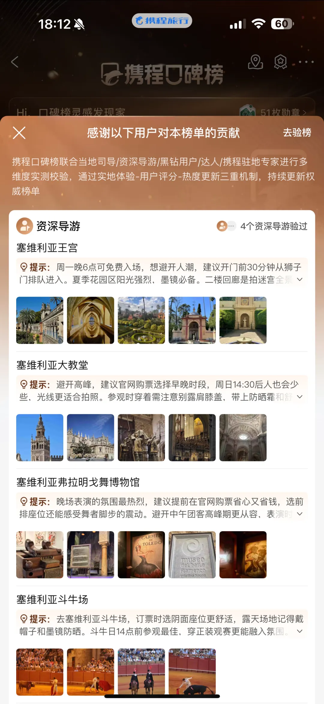 举个例子,榜单上的塞维利亚王宫,下方的游玩 Tips 和避坑指南不仅会涉及到“周一晚 6 点可免费入场”这样的通用信息,也会涵盖如“提前 30 分钟从狮子们进入可避开人潮”“夏季花园区阳光强烈建议墨镜”这类实用经验。