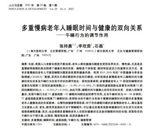 参考资料[1]张持晨.多重慢病老年人睡眠时间与健康的双向关系——午睡行为的调节作用, 人口与发展, 2023-07-29