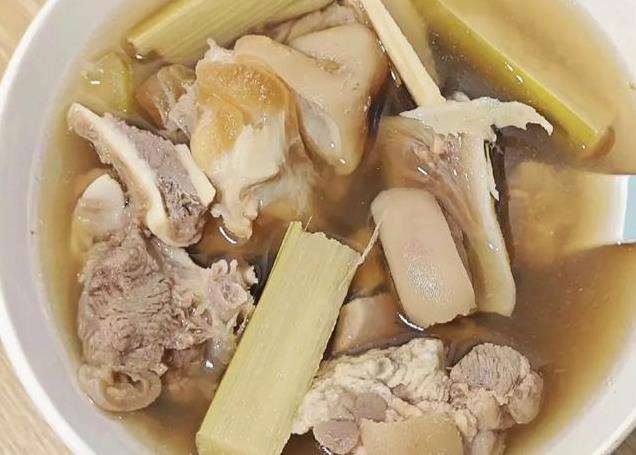 甘蔗具有清热生津、润燥和中的作用,羊蹄富含胶原蛋白和多种营养成分,具有强筋健骨、滋阴润燥等功效。红枣和枸杞则进一步提升了汤品的滋补效果。这道汤味道清甜,营养丰富,尤其适合在干燥的冬季食用。