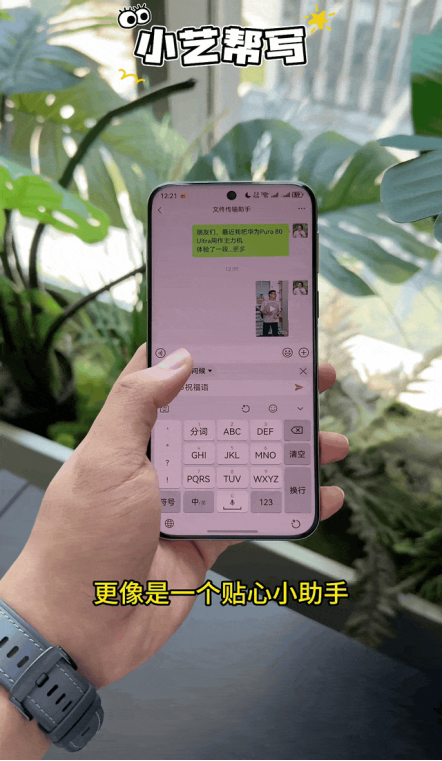 还有小艺输入法,自带“拍摄输入”功能,在微信输入框长按选择相机对准PPT或书本,就能自动提取文字一键发送。“小艺帮写”更是能满足我多样化的文案需求,朋友圈文案、会议演讲稿等都能轻松生成。