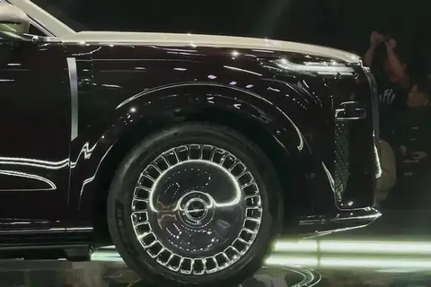 车身侧面,流畅的线条勾勒出优雅而动感的轮廓。流光星辰门把手不仅设计新颖,而且在实际使用中也非常便捷。当手靠近门把手时,它会自动弹出,仿佛在热情地迎接你的到来;而当你离开时,它又会悄然收回,与车身完美融合,展现出一种科技与美学的和谐统一。车窗周围的镀铬装饰条,如同一条精致的丝带,环绕在车身四周,进一步提升了整车的豪华感。