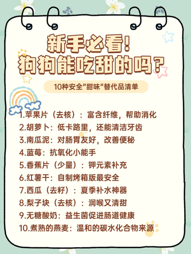 虽然要避免精制糖,但有些天然食物的甜味可以安全地满足狗狗的口腹之欲: