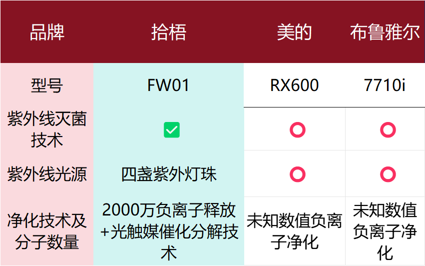 美的RX600和布鲁雅尔7710i在这方面相对单一。它们都宣称具备负离子净化功能,但未标明具体释放数量,也没有配备紫外线光源,缺乏明确的灭菌技术支持,因此在抗菌、抗病毒能力上表现有限。