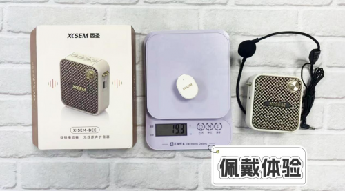佩戴体验:麦克风仅重20g,扩音器本体约165g,整体佩戴轻巧灵活,配合创新磁吸纽扣设计,可以稳固固定在衣物或领口,即便长时间授课或户外讲解,也不会产生颈肩负担。实际使用中,无论是在教室走动、户外导游带团,还是培训场景中频繁移动,西圣Bee都能保持稳定,麦克风不会晃动或滑落,长时间使用依然舒适自然,非常适合教师和讲师日常使用。
