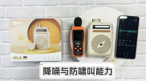 佩戴体验:S5的麦克风约20g,扩音器本体约266g,佩戴起来相对稳固。领夹设计可以固定在衣物或领口位置,移动授课或户外讲解时基本不会滑落。由于整体重量较轻,大部分用户可以长时间佩戴而不会感到明显疲劳,但如果一天连续使用时间较长,可能会略感压肩或颈部。总体来说,佩戴舒适度对日常教学来说是足够的。降噪与防啸叫能力: