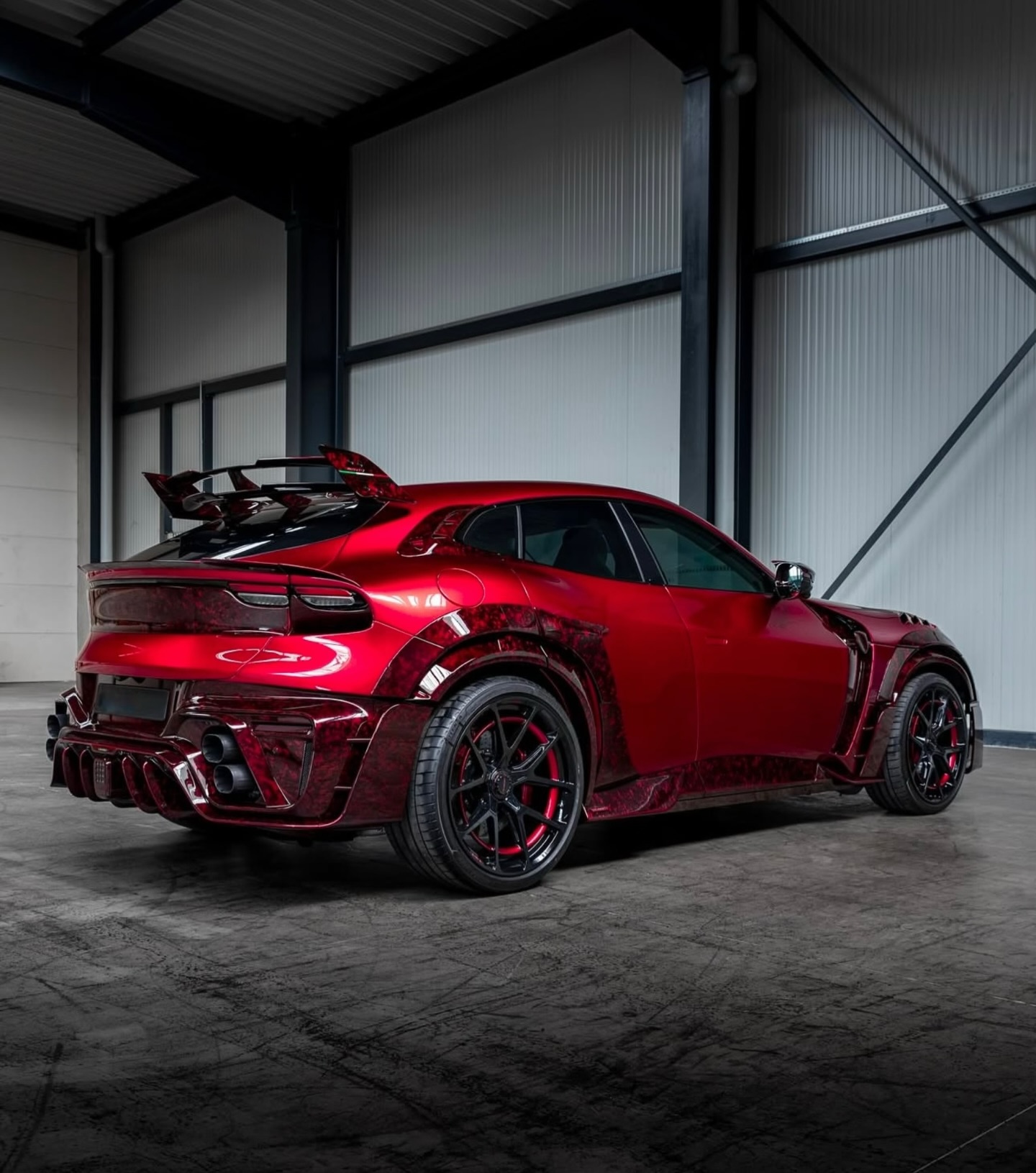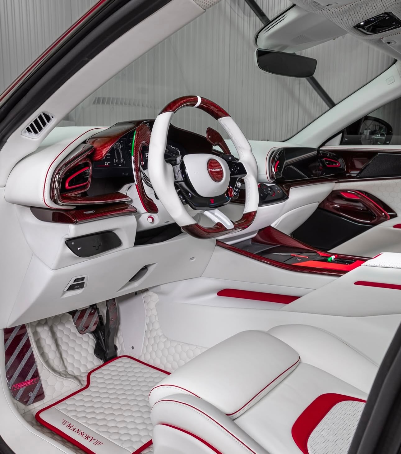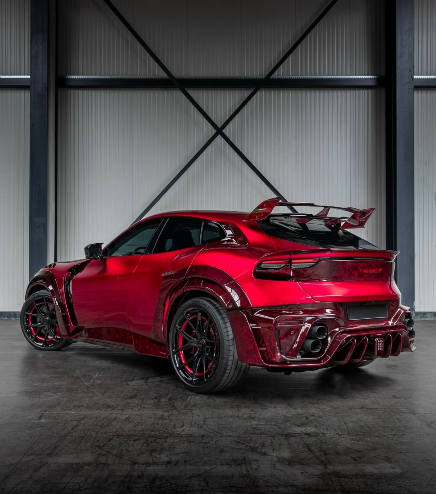 MANSORY Pugnator, a complete vehicle conversion based on the Ferrari Purosangue. Special paint finish in the colour vermillion, full bonnet made from through-coloured forged carbon, all add-on parts in through-coloured forged carbon.Newly designed forged lightweight rims type‘FC.5’, power increase to 755 hp / 730 Nm. MANSORY 迈莎锐 Pugnator 是一款基于法拉利 Purosangue 的高级定制车型。外观喷涂朱红色特殊漆面,外观套件全都采用特殊红色锻造碳材料制成。轮毂采用全新设计的“FC.5”轻量化锻造轮毂,功率提升至755 马力和730 牛米。