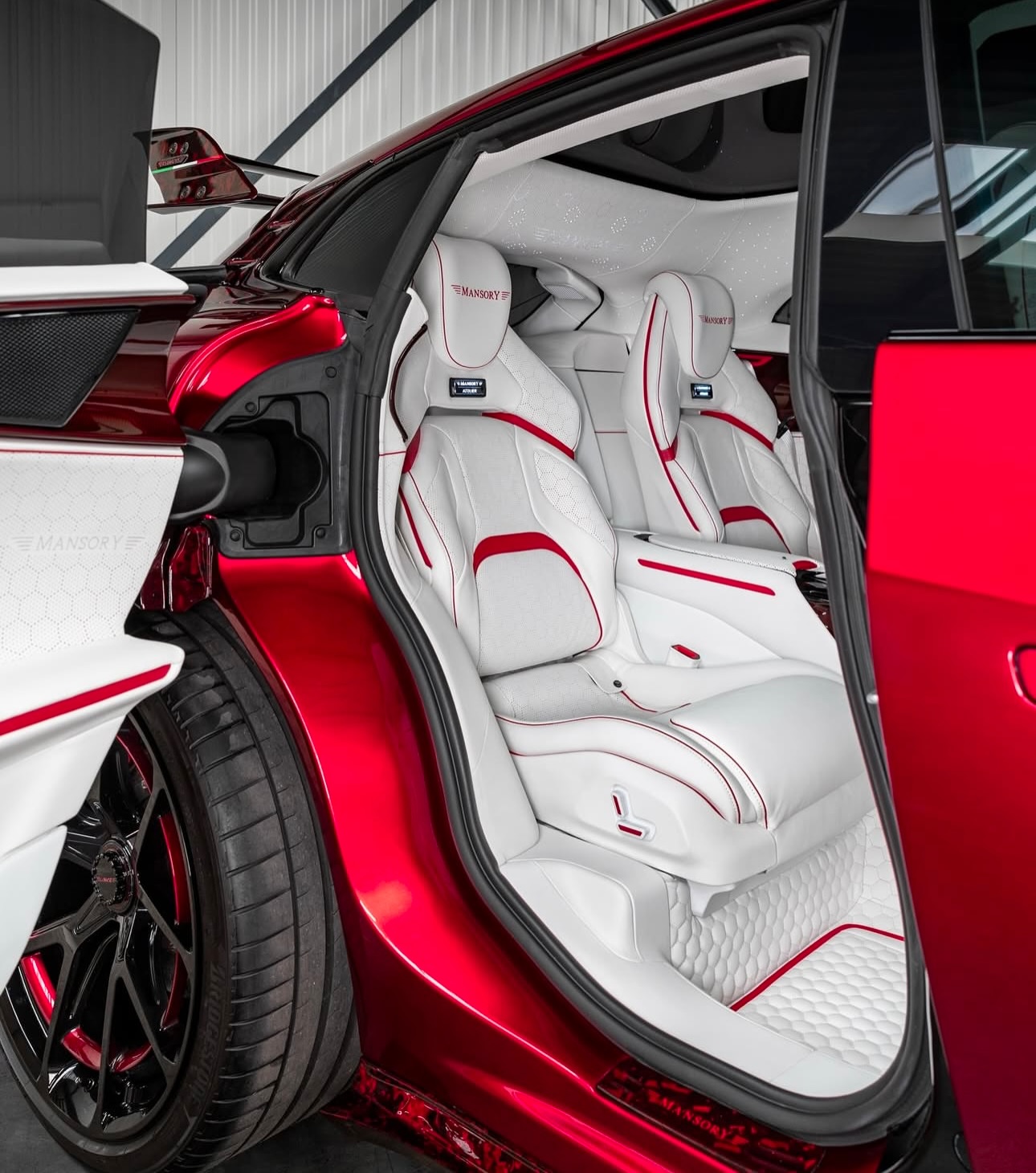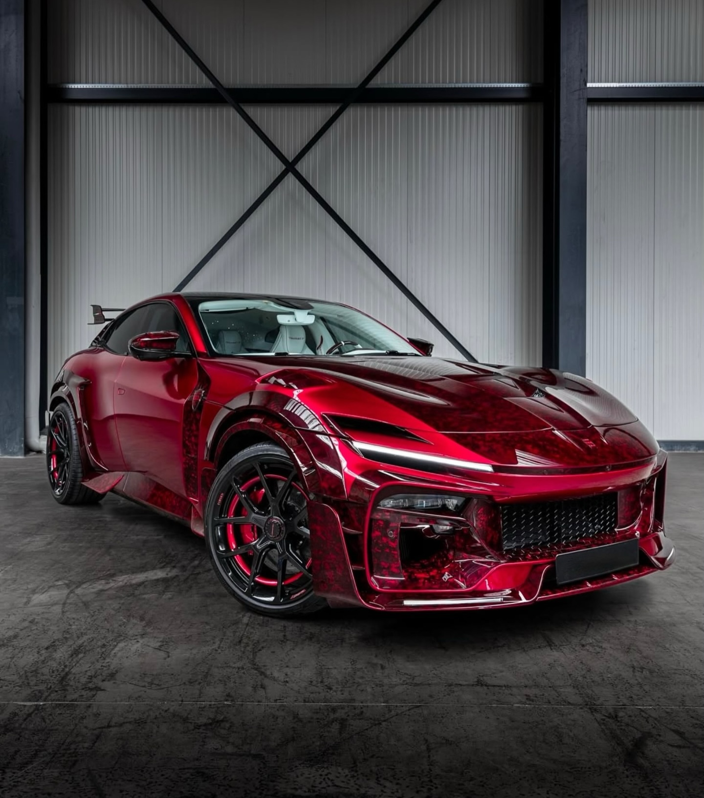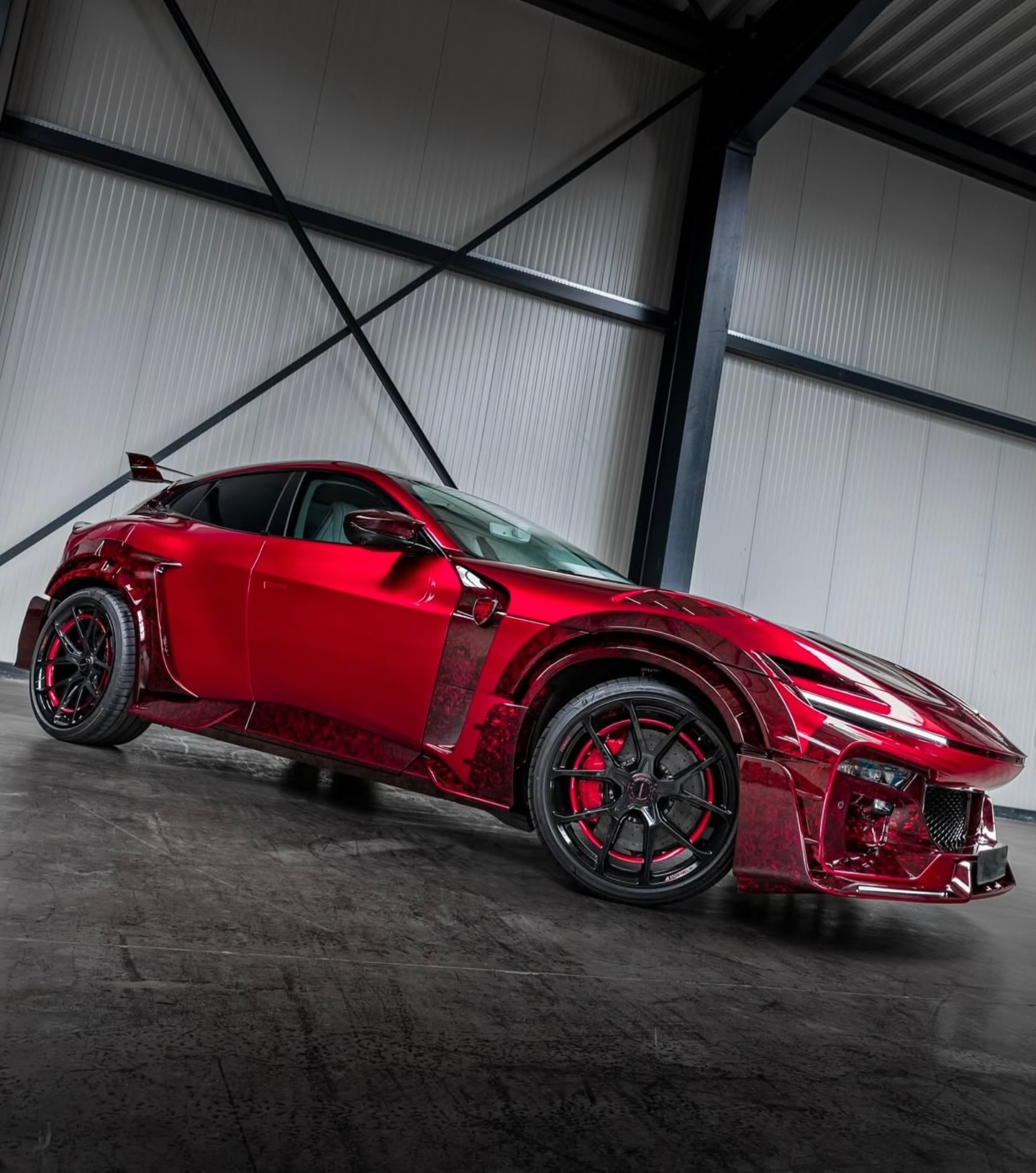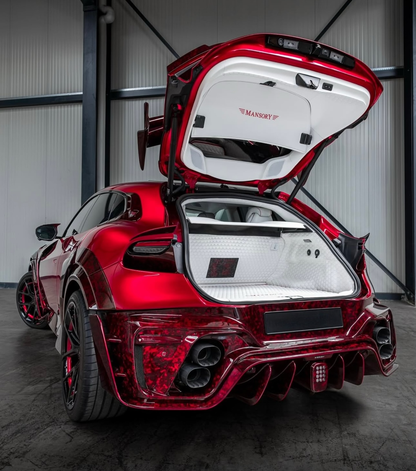 MANSORY Pugnator, a complete vehicle conversion based on the Ferrari Purosangue. Special paint finish in the colour vermillion, full bonnet made from through-coloured forged carbon, all add-on parts in through-coloured forged carbon.Newly designed forged lightweight rims type‘FC.5’, power increase to 755 hp / 730 Nm. MANSORY 迈莎锐 Pugnator 是一款基于法拉利 Purosangue 的高级定制车型。外观喷涂朱红色特殊漆面,外观套件全都采用特殊红色锻造碳材料制成。轮毂采用全新设计的“FC.5”轻量化锻造轮毂,功率提升至755 马力和730 牛米。